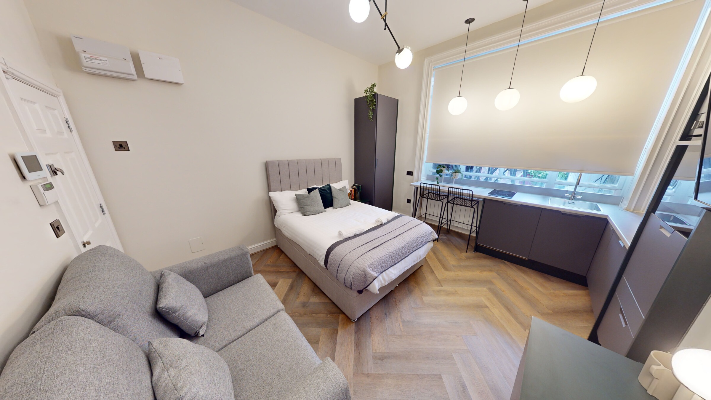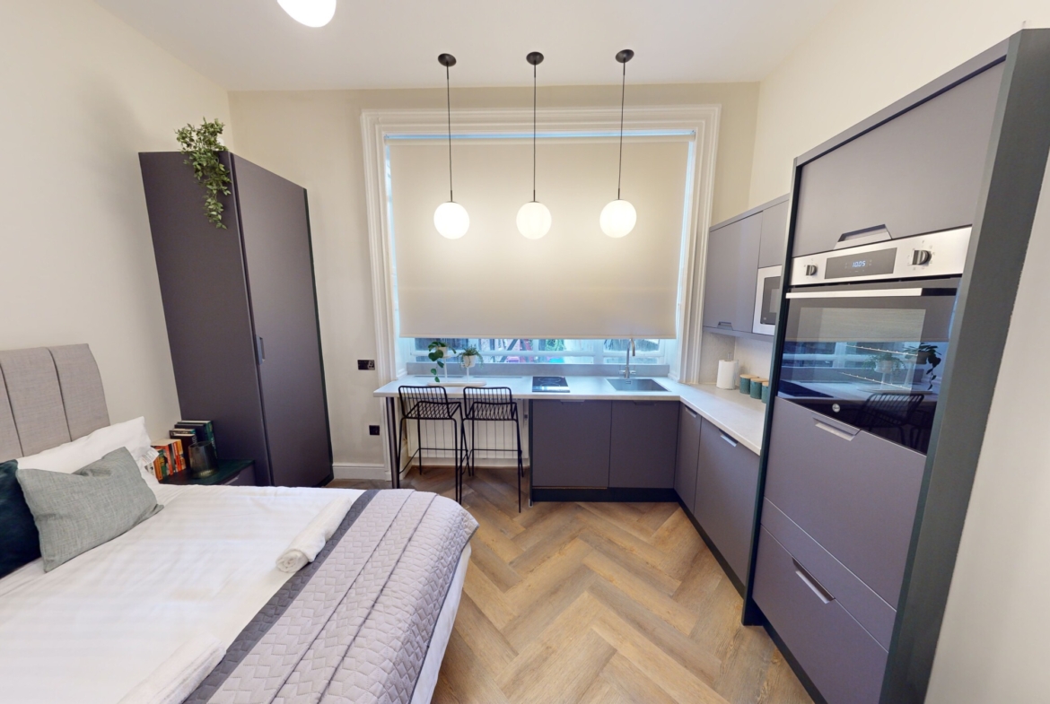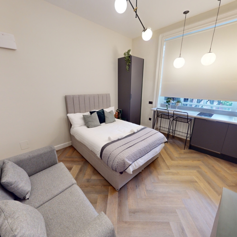 If you are done with sharing with other students, this is the place for you. A luxury studio apartment in the city centre! It’s in the perfect location, located a minute’s walk to Bold Street, a 5-10 minute walk to Liverpool John Moores University or University Of Liverpool, where you have lots of trendy cafes and restaurants right on your doorstep. If you like a cheeky pint pubs and bars are a 2 minute walk so no more spending money on Ubers.