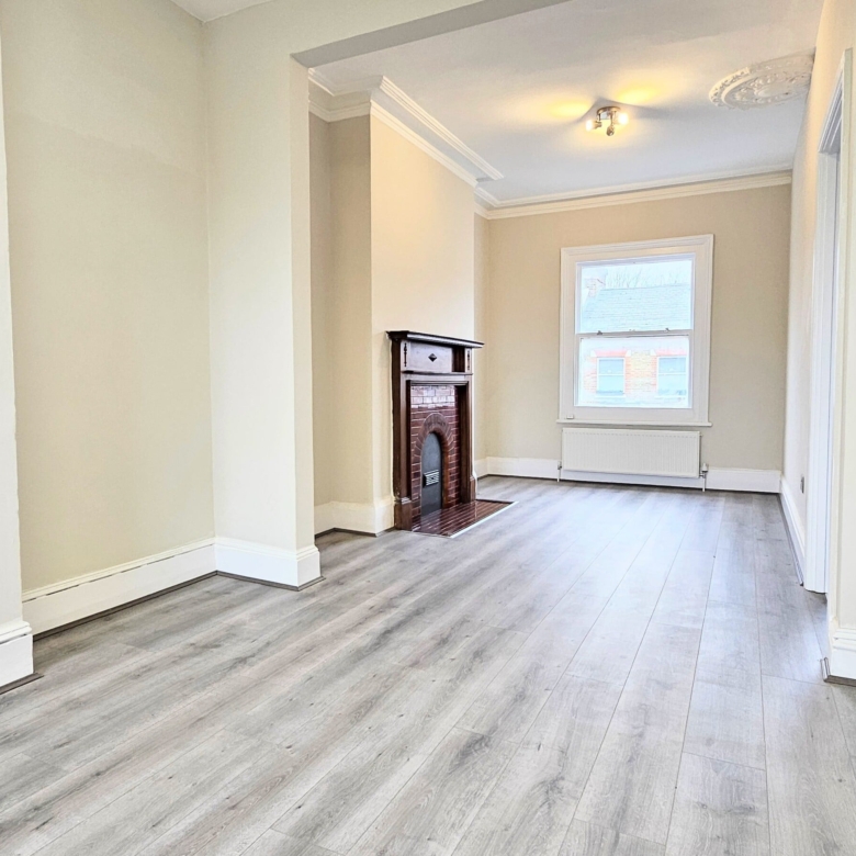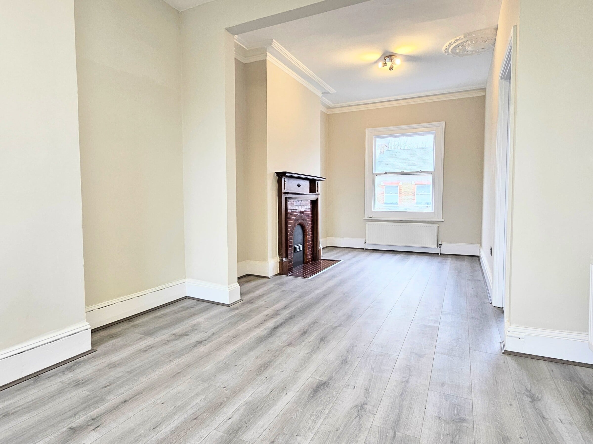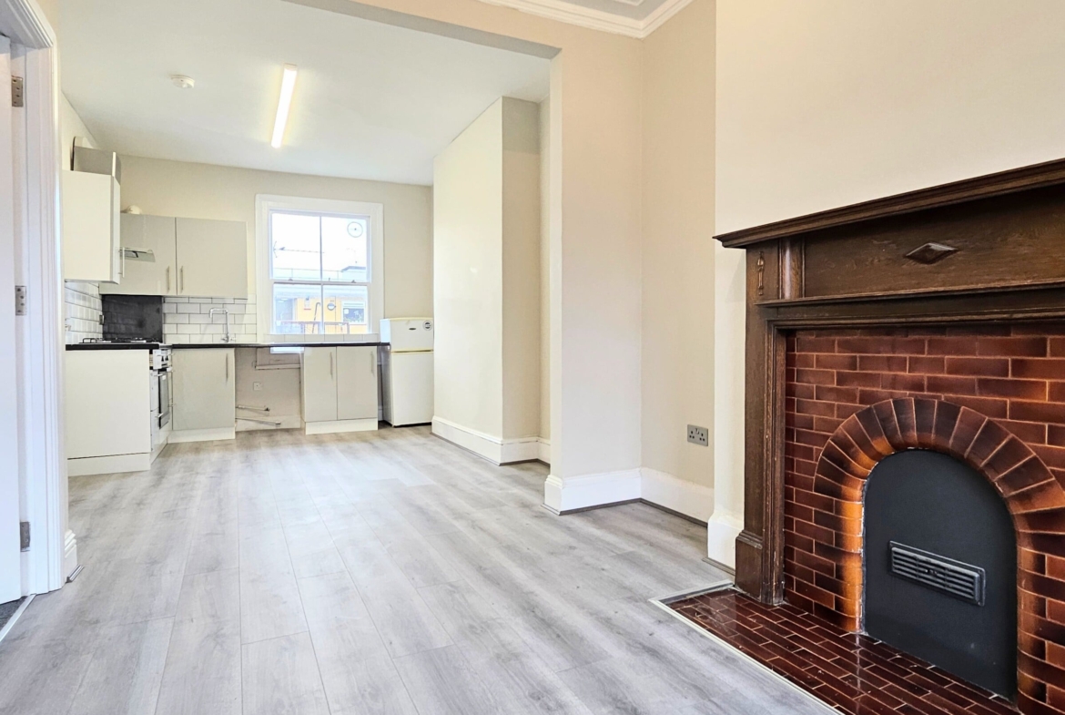 There is a spacious open plan kitchen and reception room, with plenty of space for a comfortable dining area within the kitchen, a lovey feature fireplace in the reception room and well apportioned similarly sized bedrooms.