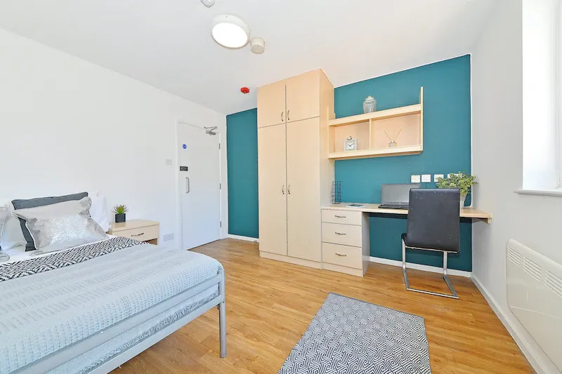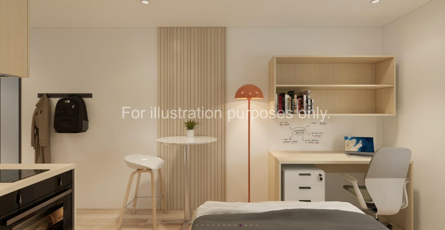 Located on floors 1 and 2, the Classic Ensuite is where 12.8-14.4 square metres of sleek living space becomes your perfect student sanctuary. This pristine room features a comfortable bed, a dedicated personal study area for academic pursuits, and your own private ensuite bathroom. Outside your room, the shared kitchen and dining space allows for sociable cooking routines. The curated design maximises functionality while maintaining the exclusive aesthetic that defines Stellaris. High Speed Internet keeps you connected to coursework and friends, while our vibrant Cinema Lounge and state-of-the-art Gym provide exceptional spaces to unwind after lectures. Live where academic success meets stylish comfort at Stellaris, the home of Cambridge’s most ambitious students.