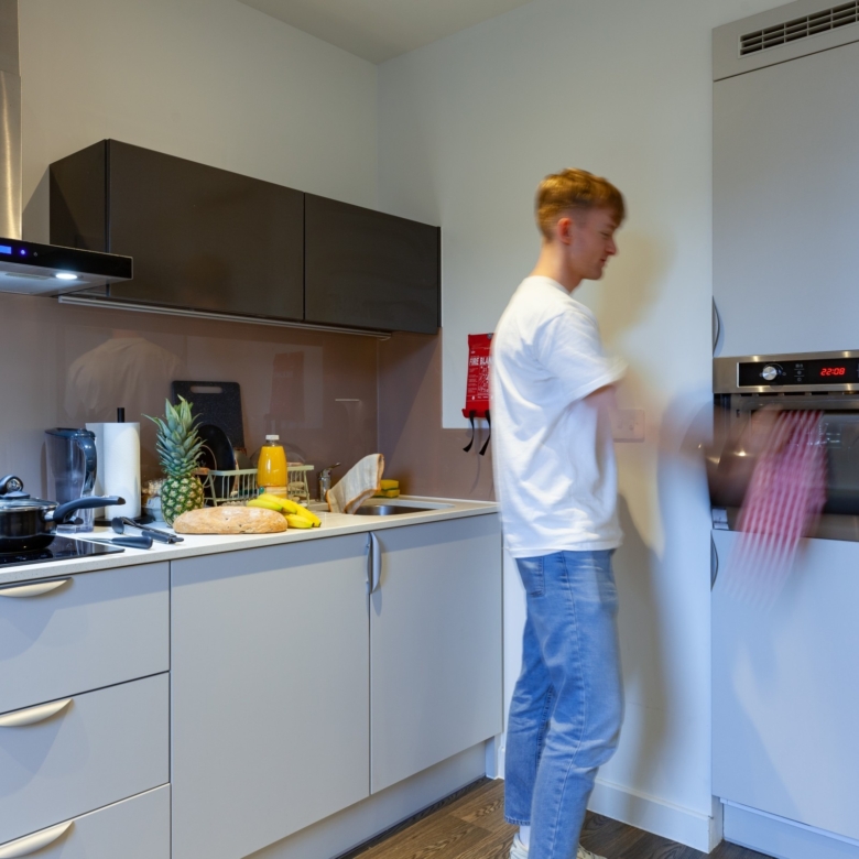 Our sky studios at true Birmingham are located on the 9th and 10th floors, providing a calm oasis above the busy city. These studios are between 19-21sqm big, and contain a luxury ensuite bedroom and kitchenette.